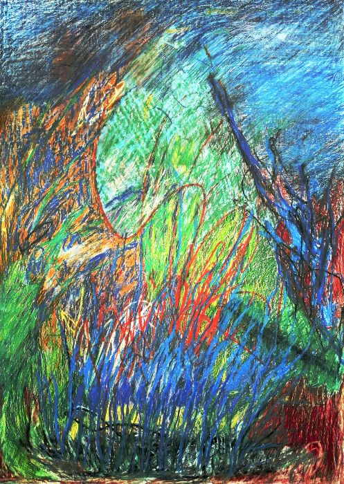 Crayon de couleur et crayon gras sur papier, 80 x 60 cm, 2025